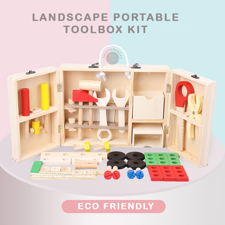 Landscape Portable Toolbox Kit Kids Wooden Boys Toys Mainan Edukatif Rakit Alat Bengkel Kayu Anak Shopee Indonesia